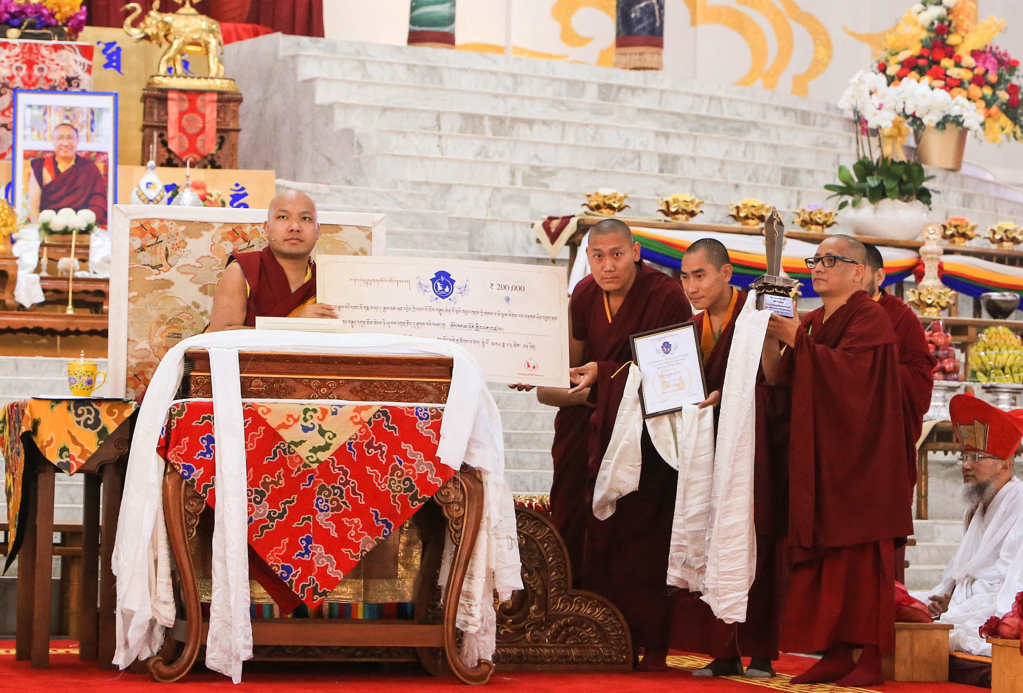 First Prize for Validity [Tib. Tsema] was awarded to Bokar Shedra. They received a trophy and a cheque for 100,000 Indian rupees.