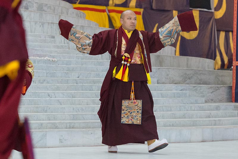 Next, young Tulku Ngotsar Wangpo led a group of dancers from Palchen Chokling Monastery in performing the ritual dance of “Four-Armed Mahakala.”