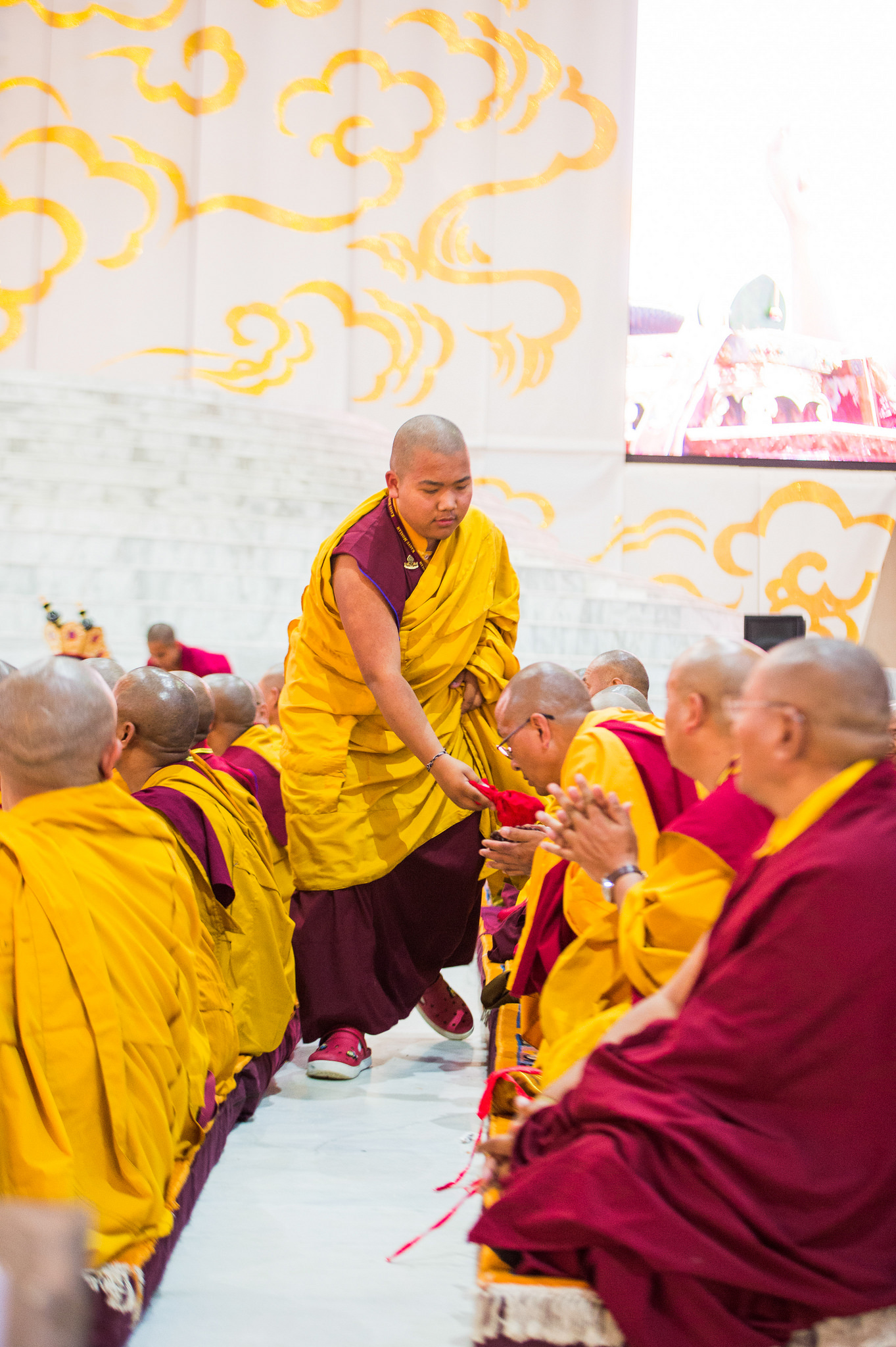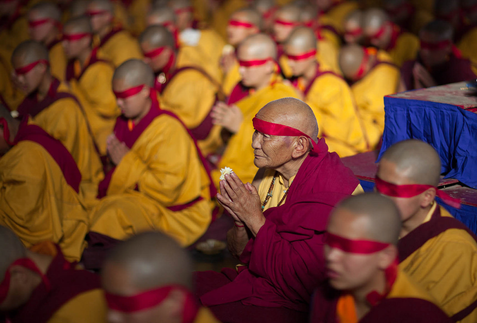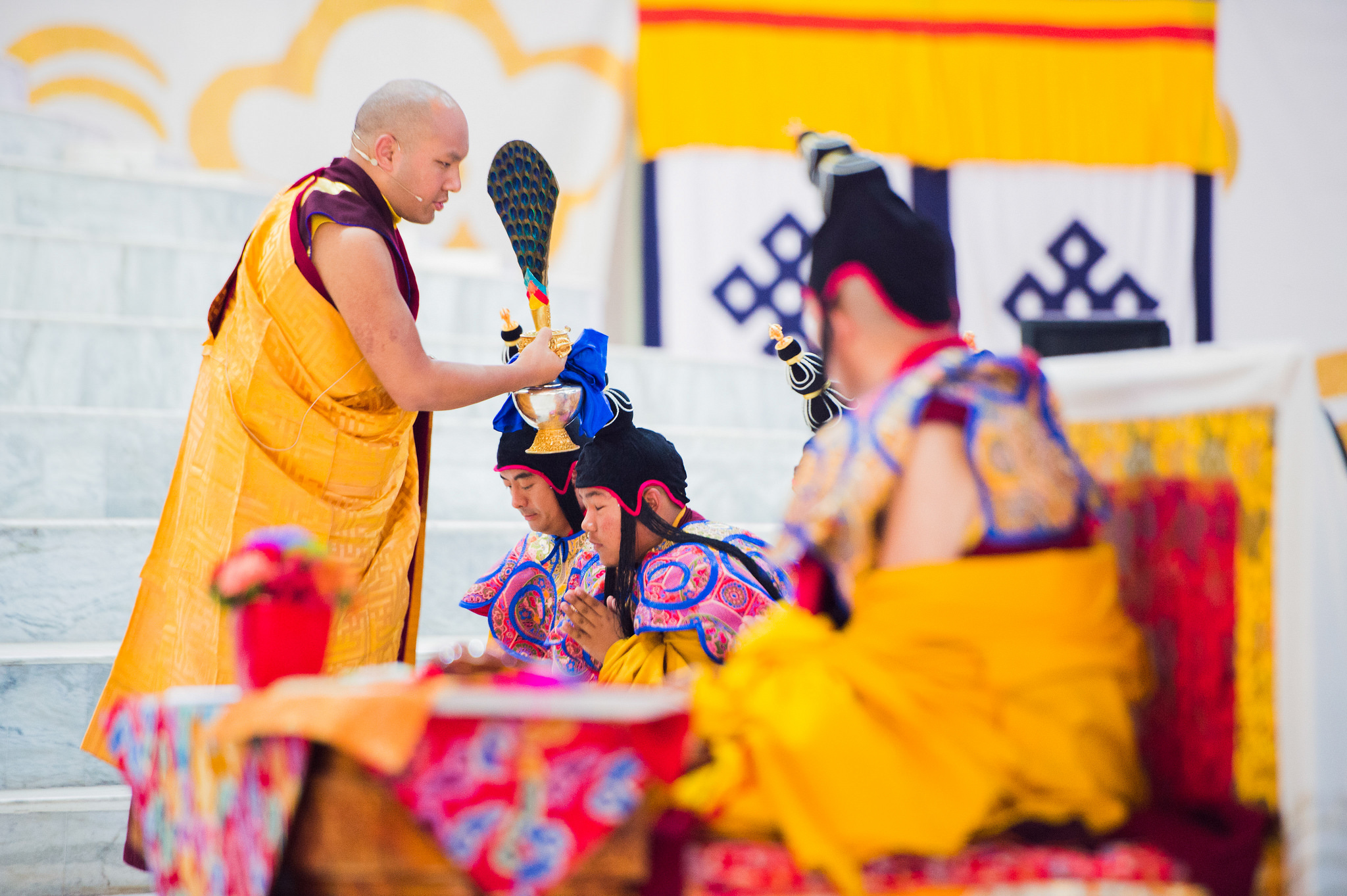 According to the tradition, red blindfolds are placed covering the eyes entirely. At this moment, His Holiness delivered some essential teachings on the path of Secret Mantra.