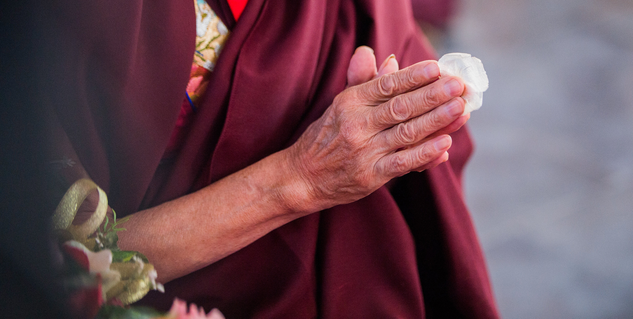 He imparted the Madhyamaka tradition of the Bodhisattva vows in Tibetan following the words found in the Way of the Bodhisattva, then repeated in English and Chinese.