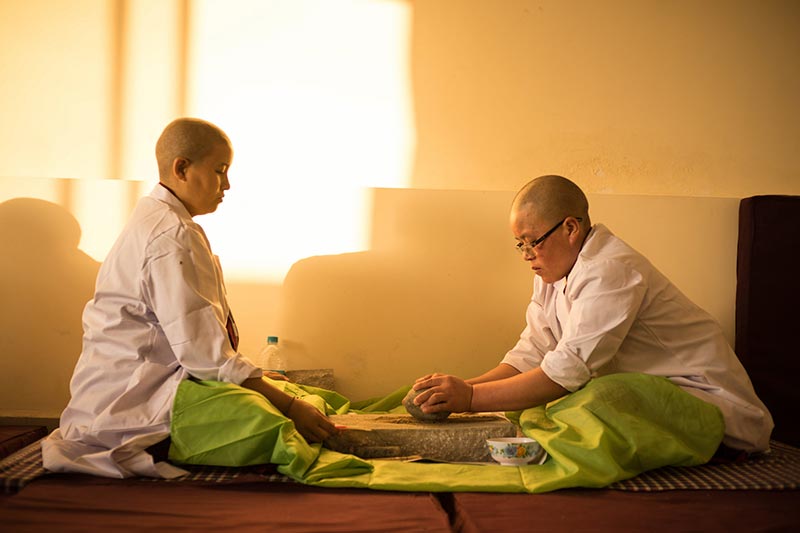 15 nuns joined forces with professional Chinese incense maker Ru-Ruei Chung, translator Ani Jangchub and Dr Dawa to make high-quality Tibetan incense, an income generation project to support the education of the nuns.