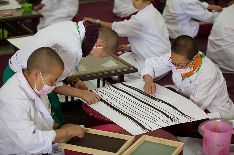 Gyalwang Karmapa visited the workshop every day to check on their progress.