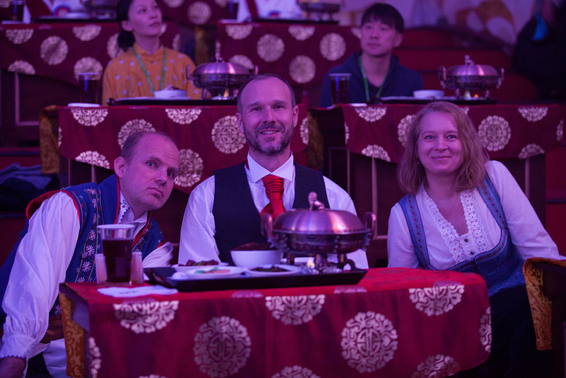 Long tables laid with impressive terra cotta place settings framed one side of the Pavilion. The Losar Feast would be shared by all in attendance.