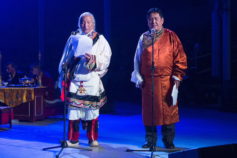 Two Masters of Ceremonies, Ngodrup Tsering and Sherab Tharchin, took the stage to provide context for the evening’s events and to introduce the performances.