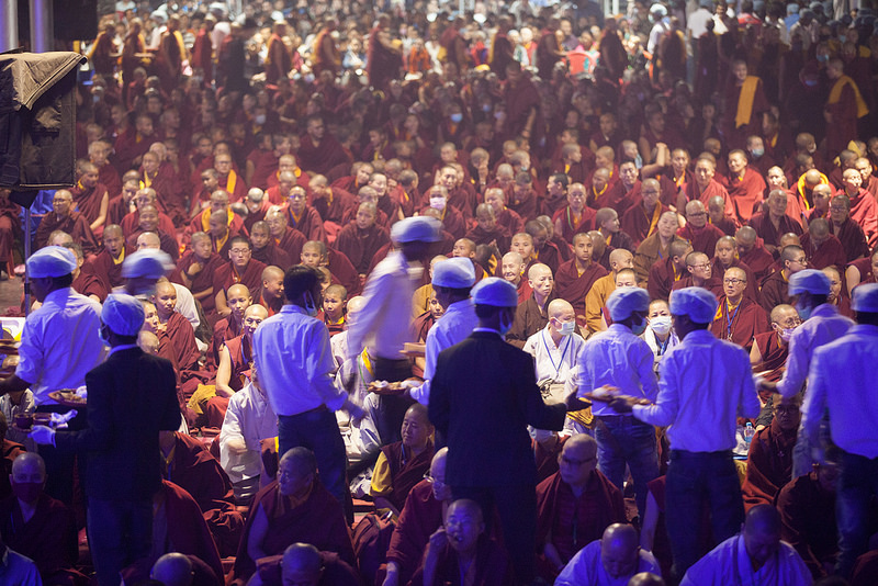 A Chinese hotpot-style meal was served to His Holiness and the VIPs on the stage.
