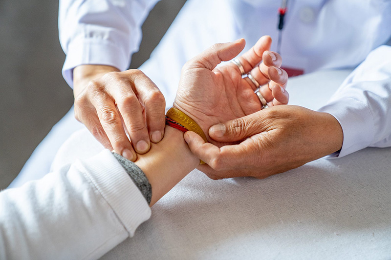 4. Pulse taking is very precise: the doctor places the index, middle and third fingers on the radial arteries and examines the pulse on both left and right wrists: the left wrist is first if the patient is a man, and the right is first for a woman.