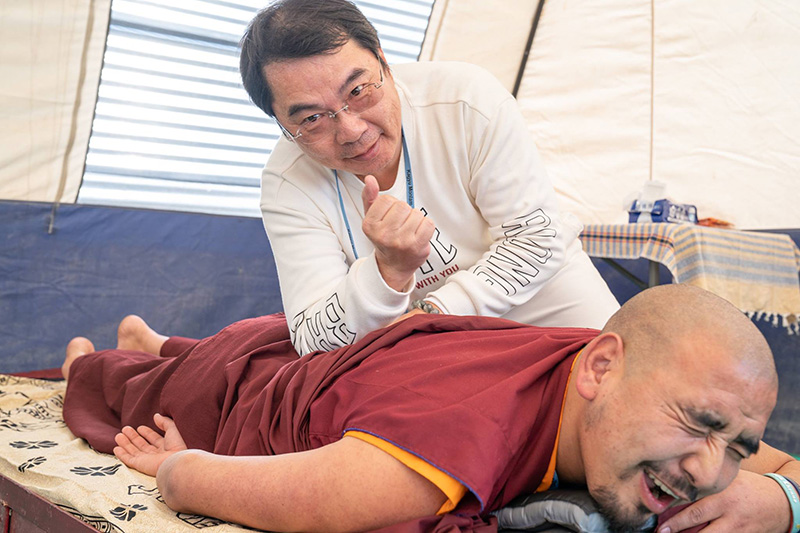 A second medical camp, housed in tents behind the Monlam Pavillion, offers traditional Tibetan medicine free of charge for a range of conditions.