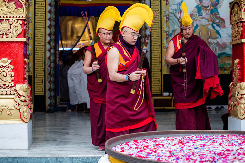 Comprised only of monks who have completed the traditional three-year retreat in the Kagyu tradition, this ceremony is a test of their accomplishment as yogis and takes place on the last day of the Monlam. It was incorporated into the Monlam by His Holiness the 17th Gyalwang Karmapa during the 34th Monlam in February 2017, following a tradition established by the 7th Karmapa, Choedrak Gyatso.