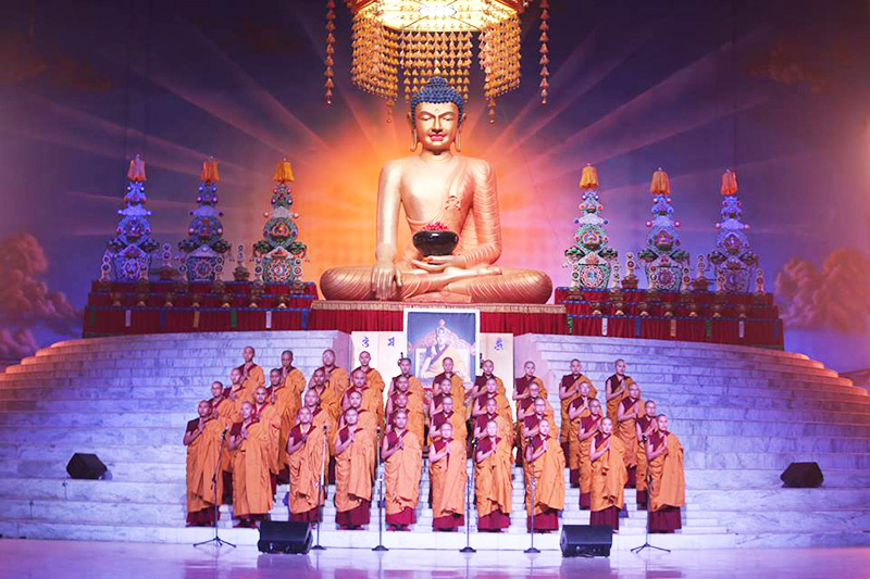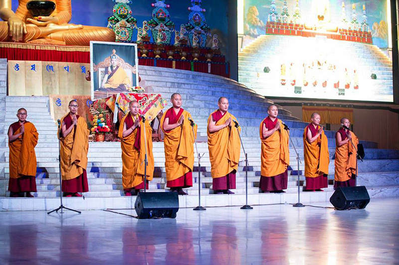 11. The nuns from the Drupde Palmo Chokyi Dingkhang Nunnery returned, together with the monks of the Vajra Vidya Institute of Thrangu Monastery, for a rendition of A Joyful Aspiration, a poem composed by the Karmapa.