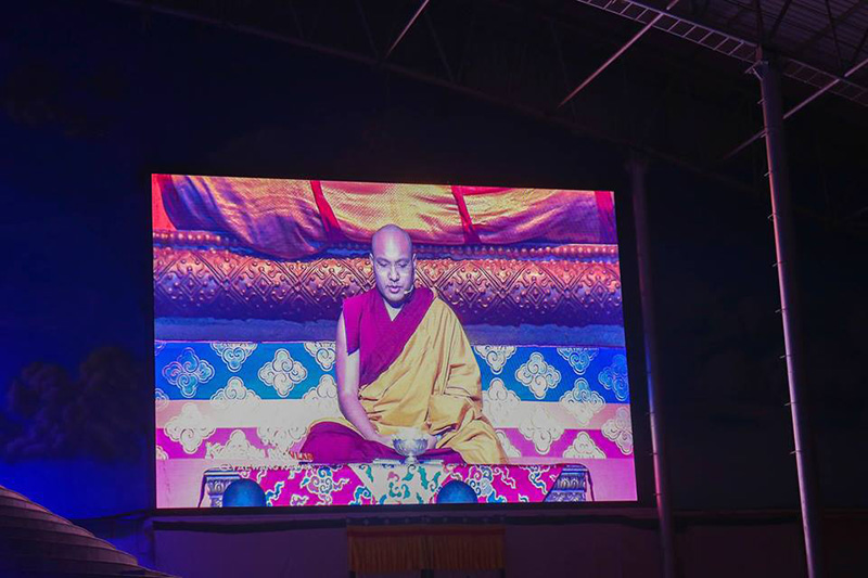 13. Although physically absent, His Holiness leads the Lamp Offering.