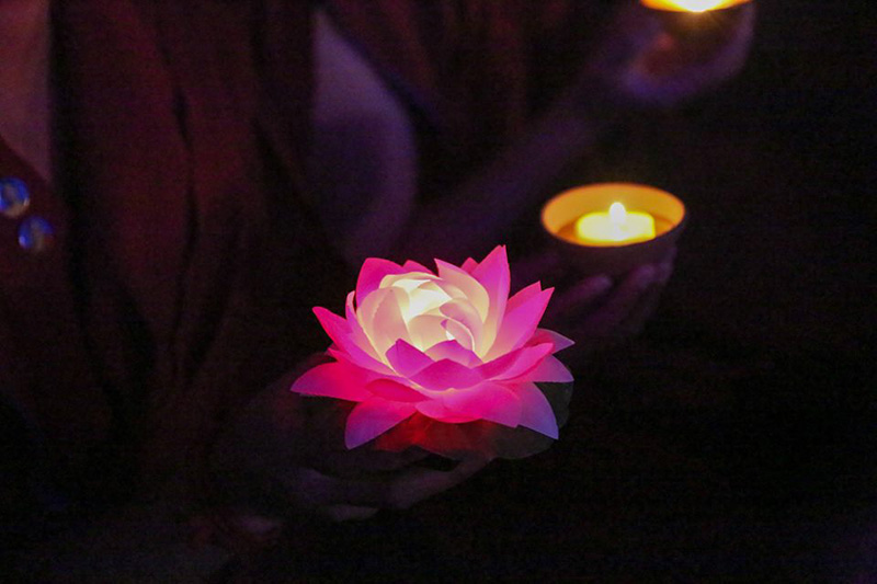 19. The sea of offering lights shimmer and sway to the sound of the offering prayer.