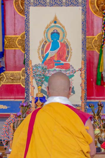 Buddha Akshobhya is the Imperturbable One, who vowed endless patience, and now symbolises overcoming such negative emotions as anger and hatred. Hence, the Akhshobhya Puja is a powerful purification ritual, and the bonfire is built over a pacification mandala. Only those who have received the Akhshobhya empowerment and completed the Akhshobhya retreat may take part, though the public can watch from a distance. During the Monlam, there is the opportunity to submit the names of both the living and the dead, written on paper, for inclusion in this ritual. For many, this puja has become a deeply significant memorial for loved ones and friends who have died, or a chance to help clear obstacles for those who are living.