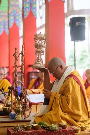 7. Here Andzin Rinpoche receives the parasol to offer it.
