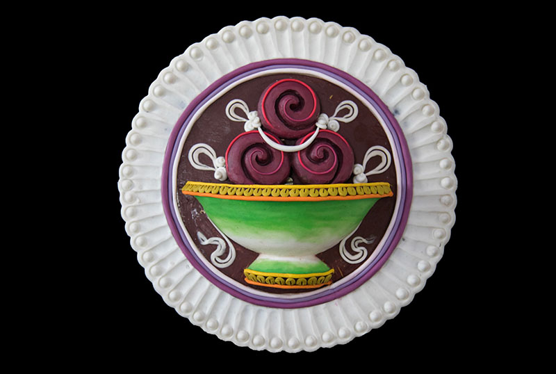 14. A butter sculpture medallion to be used on a shalze.