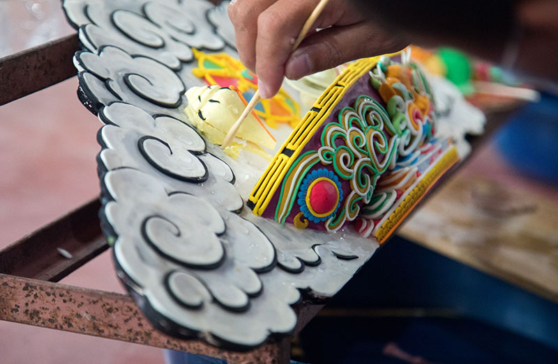 4. Precision working on the Buddha's halo.