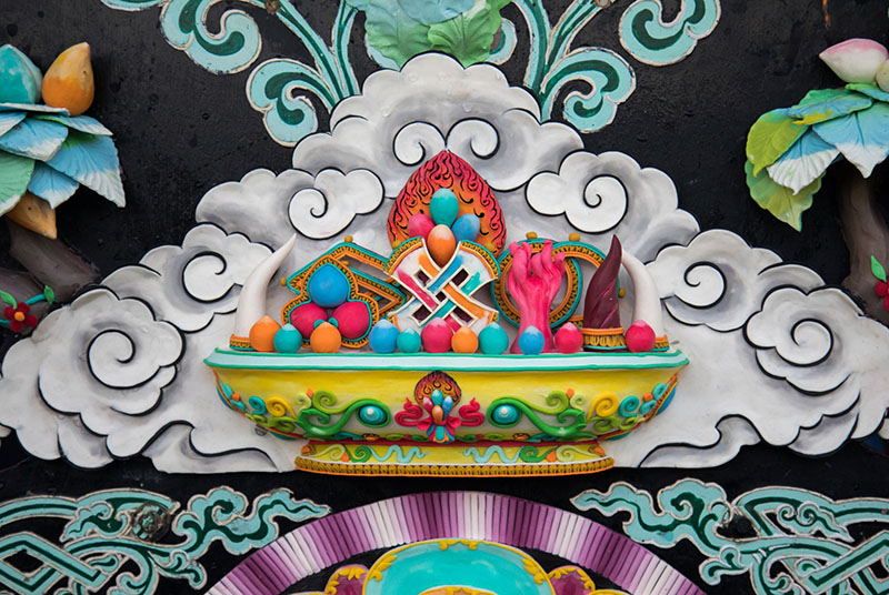 18. Assembling the elements of a torma onto the gyentra.