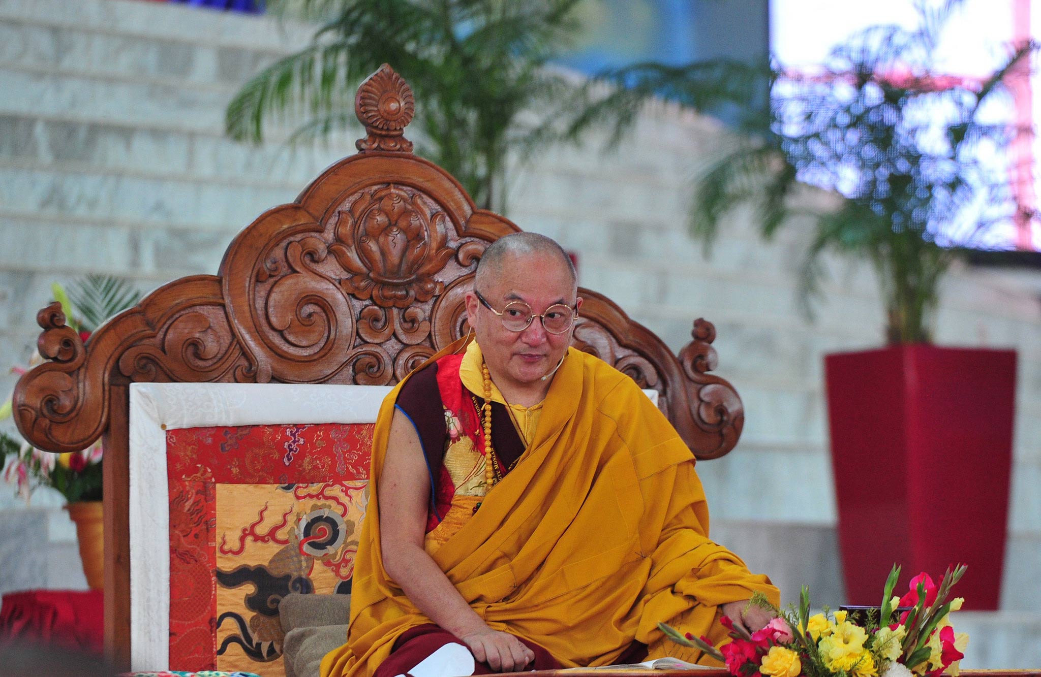 ཆོས་ཐུན་སྔ་མ་གྲུབ་ནས་བར་གསེང་གི་རྗེས་སུ། སླར་ཡང་༸སྐྱབས་མགོན་རྒྱལ་བའི་རྒྱལ་ཚབ་མཆོག་ནས་ཕྱག་ཆེན་སྨོན་ལམ་གྱི་བཀའ་ཁྲིད་ཆོས་ཐུན་སྔ་མའི་མཚམས་ནས་མུ་མཐུད་དེ་གསུང་དོན། རྣམ་རྟོག་གི་སྙིང་རྗེ་ནི་སྐྱོན་གྱིས་གོས་པ་ཡིན་པ་དང་། གནས་ལུགས་ཀྱི་སྙིང་རྗེ་ནི་རྟོག་པ་མེད་པས་ནམ་ཡང་སྐྱོན་གྱིས་གོས་པ་མེད་པ་སོགས་སྙིང་རྗེའི་བཀའ་ཁྲིད་ཞིབ་རྒྱས་གསུངས་རྗེས། དད་ལྡན་སློབ་ཚོགས་ཡོངས་ལ་སྐར་མ་འགའ་གནས་ལུགས་ཕྱག་རྒྱ་ཆེན་པོའི་ངང་ནས་རྟོག་པ་མེད་པའི་སྙིང་རྗེ་སྒོམ་དགོས་པའི་བཀའ་སྩལ། དེ་བཞིན་སེར་སྐྱ་ཕོ་མོ་ཡོངས་ནས་ཀྱང་རང་རང་གི་བཞུགས་གནས་སུ་སྐར་མ་འགའ་ཤས་སྒོམ་ལ་བརྩོན།