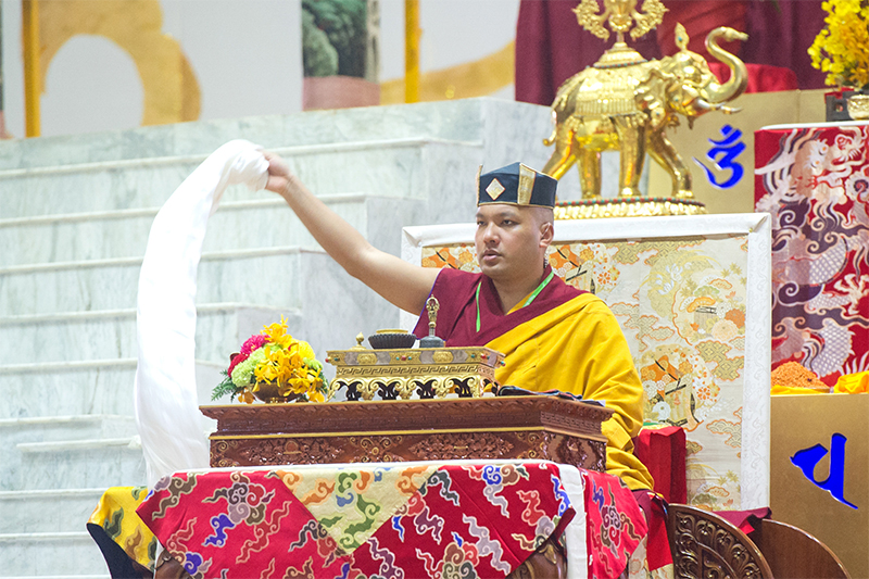 དེ་ནས་ད་ལན་སྨོན་ལམ་སྐབས་སོ་བཞི་པར་རྒྱལ་ཁབ་ལྔ་བཅུ་ཙམ་ནས་མང་ཚོགས་དུ་མ་ཕེབས་ཡོད། དེ་ཡང་ཀརྨ་པ་བདུན་པ་ཆོས་གྲགས་རྒྱ་མཚོའི་ཞལ་སྔ་ནས། ཡུལ་དང་སྐད་རིགས་མི་གཅིག་པ། མི་རིགས་རྣམ་པ་སྣ་ཚོགས་པ། བདེ་སྐྱིད་ཡང་ཡང་འཛོམས་པར་ཤོག །ཅེས་གསུངས་པ་དེ་ད་ལྟ་མངོན་དུ་འགྱུར་བ་ལྟ་བུ་ཡིན། དེས་ཀྱང་འཛམ་བུ་གླིང་པ་ཀུན་ལ་འཛམ་གླིང་ཞི་བདེ་ཡོང་བ་དང་། འགྲོ་བ་སེམས་ཅན་ཐམས་ཅད་བདེ་སྐྱིད་ཡོང་བའི་སེམས་འཁུར་གཅིག་པ་ཡོད་པ་མཚོན་བཞིན་ཡོད། དེས་ན་ཕྱི་རྒྱལ་ནས་ཕེབས་པ་དང་། ཧི་མཱ་ལ་ཡ་རྣམས་དང་། བོད་པ་རྣམས་དང་། བོད་ནས་གསར་དུ་ཕེབས་པ་ཀུན་ལ་ཐུགས་རྗེ་ཆེ་ཞུ་རྒྱུ་ཡིན།