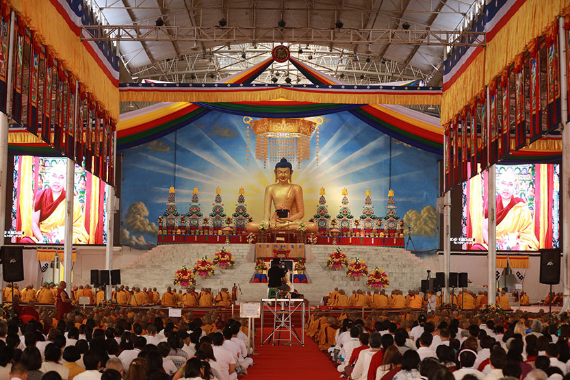 དེ་རིང་བཀའ་བརྒྱུད་སྨོན་ལམ་ཐེངས་སོ་ལྔ་པའི་དངོས་གཞི་ལ་ཐུག་ཡོད་རེད། དེའི་ཚོགས་མགོན་དུ་ཕེབས་པའི་རྒྱལ་བའི་རྒྱལ་ཚབ་ཀྭན་ཏིང་གཽ་ཤྲཱི་ཆེན་པོ་མཆོག་དང་སྐྱབས་རྗེ་ཡོངས་དགེ་མི་འགྱུར་རིན་པོ་ཆེ་དབུས་པས་བླ་སྤྲུལ་རྣམ་པ་ཚོ་དང་། དེ་བཞིན་མཁན་པོ་དགེ་བའི་བཤེས་གཉེན་རྣམ་པ་ཚོ་དང་། དགོན་སྡེ་ཁག་ནས་ཕེབས་པའི་དགེ་འདུན་འདུས་པ་རྒྱ་མཚོ། དེ་བཞིན་ཕྱོགས་མཐའ་ཁག་ནས་ཕེབས་པའི་དད་ལྡན་སེར་སྐྱ་ཕོ་མོ་ཡོངས་ལ་བོད་རབ་གནས་ས་ཁྱི་ལོའི་གནམ་ལོ་གསར་ཚེས་ལ་བཀྲ་ཤིས་བདེ་ལེགས་ཀྱི་འཚམས་འདྲི་ཞུ་རྒྱུ་ཡིན། ལོ་གསར་པའི་ནང་དུ་སྐུ་གཟུགས་གསལ་ཐང་དང་བྱ་བ་ལམ་འགྲོ་ཡོང་བའི་བཀྲ་ཤིས་སྨོན་འདུན་ཞུ་རྒྱུ་ཡིན།