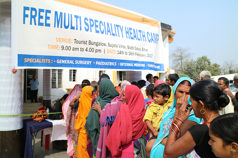 དཔལ་༸རྒྱལ་དབང་ཀརྨ་པ་མཆོག་ས་གནས་ Sujata Guest House གྱི་ཉེ་འདབས་སུ་མཆིས་པའི་བཀའ་བརྒྱུད་སྨོན་ལམ་ཚོགས་པས་གོ་སྒྲིག་བགྱིས་པའི་རིན་མེད་འཕྲོད་བསྟེན་སྨན་ཁང་དུ་གཟིགས་ཞིབ་ཕྱིར་ཆིབས་སྒྱུར་བསྐྱངས། འཕྲོད་བསྟེན་ཁང་དེ་ཉིད་ཕྱི་ལོ་ ༢༠༡༧ ཟླ་བ་ ༢ ཚེས་ ༡༤ ནས་ ༡༦ བར་ཉིན་གསུམ་གྱི་རིང་ས་གནས་ཡུལ་མི་ཉམས་ཐག་ཀུན་ལ་རིན་མེད་སྨན་སྦྱིན་གནང་རྒྱུ་ཡིན་འདུགདེར་ཁང་པའི་ཕྱི་ལོགས་སྒོ་མཆོར་འོག་ཏུ་ནད་མནར་བ་རྣམས་ཐོ་འགོད་གྲུབ་རྟིང་ནང་ལ་རེ་རེ་བཞིན་བཏང་ནས་སྒོའི་ཡར་འགྲམ་དེར་གཟུགས་པོའི་ལྗིད་ཚད་དང་རིང་ཐུང་དཔྱད་རྗེས་སྨན་པར་བསྟེན་དགོས་འདུགསྒོ་ཤོད་ནང་དུ་སྨན་པ་བཞི་ཡིས་ནད་པར་བརྟག་དཔྱད་བྱེད་བཞིན་འདུག །ཁང་མིག་102/103/104/གསུམ་གྱི་དང་པོའི་ནང་དུ་སྨན་པ་གཉིས་དང་། ཕྱི་མ་གཉིས་ཀྱི་ནང་དུ་སྨན་པ་གསུམ་རེས་ནད་མནར་བ་དེར་འདུས་ཀུན་ལ་རེ་རེ་བཞིན་བརྟག་བཞིན་འདུགསྨན་གཡོག་སྲི་ཞུ་བ་རྒྱ་གར་དང་བོད་པ་ཅི་རིགས་འདུག༸རྒྱལ་དབང་མཆོག་མ་ཕེབས་པའི་སྔོན་དུ་གོ་སྒྲིག་པ་ལྷག་པ་ཚེ་རིང་ནས་གསར་འགོད་གསལ་བསྒྲགས་ཞིག་ཀྱང་གནང་སོང་།ཆུ་ཚོད་11:30ཕྱེད་ཐོག་དཔལ་༸རྒྱལ་དབང་ཀརྨ་པ་མཆོག་སྨན་ཁང་དུ་ཞབས་སོར་འཁོད་རྗེས་རྒྱ་གར་གྱི་་མེཀ་སི་སྨན་ཁང་ཆེན་མོའི་འགན་འཛིན་MohiniDaljeetSingh མོ་ཧི་ནི་དྷལ་རྗིད་སིང་གཙོས་པས་གོ་སྒྲིག་པ་རྣམས་ནས་མཇལ་དར་ཕུལ་བ་དང་བཅས་སྨན་ཁང་དུ་ཕེབས་བསུ་ཞུས།མོ་ཧི་ནི་དྷལ་་ཇིད་སིང་དང་ལྷག་པ་ཚེ་རིང་གཉིས་ནས་ངོ་སྤྲོད་ཞུས་ཞོར་༸རྒྱལ་དབང་མཆོག་ནས་སྨན་སྤྲོད་ཁང་དང་བརྟག་དཔྱད་ཁང་ཡོངས་ལ་ཕེབས་ནས་གཟིགས་ཞིབ་ལེགས་པར་མཛད།གཟིགས་ཞིབ་གྲུབ་རྗེས་དེའི་མདུན་ཐད་ཀྱི་༼ཨ་ཀོང་རིན་པོ་ཆེའི་རྗེས་དྲན་ཟས་སྦྱིན་ཁང་༽དུ་ཕེབས་སོང་།གསོལ་ཚིགས་མཆོད་ཡུལ་སྦུག་གི་སྟོན་པའི་སྐུ་བརྙན་སྐུ་མདུན་དུ་མཇལ་དར་ཕུལ་ཟིན་རྗེས་ཐབ་ཚང་དུ་ཕེབས་ཏེ་སྔོ་ཚལ་དང་སྣོད་ཆས་སོགས་ལ་གཟིགས་ཞིབ་གནང་ཞིང་ཚོགས་མི་ཡོངས་དང་ལྷན་དུ་སྐུ་པར་བསྒྲོན་རྗེས་རོ་ཡལ་གསོལ་མགྲོན་ཁང་དུ་སྦྱིན་བདག་རྣམས་ནས་གུང་ཚིགས་ཕྱིར་གདན་ཞུས་བཞིན་ཆིབས་བསྒྱུར་བསྐྱངས་པའི་གནས་ཚུལ་སྙིང་བསྡུས་སུ།