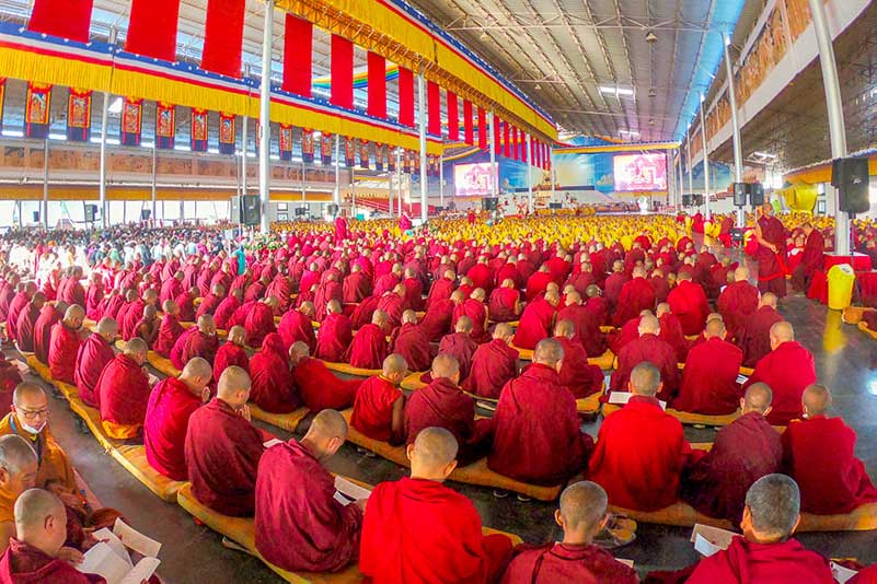 ཕྱི་ལོ་ ༢༠༢༠ ཟླ་ ༡ ཚེས་ ༣༡ ཉིན། བཀའ་བརྒྱུད་སྨོན་ལམ་ཆོས་རའི་ནང་སྔ་དྲོ་དུས་ཚོད་བརྒྱད་པའི་ཐོག་སྒྲུབ་བརྒྱུད་བསྟན་པའི་གཙུག་ནོར་༸སྐྱབས་མགོན་རྒྱལ་བའི་༸རྒྱལ་ཚབ་རིན་པོ་ཆེ་མཆོག་དུང་རྒྱ་སྤོས་སྣེས་གདན་ཞུས་ཀྱིས་ཚོགས་ཀྱི་དབུ་བཞུགས་ཐོག་༸སྐྱབས་རྗེ་མི་འགྱུར་རིན་པོ་རིན་པོ་ཆེ་མཆོག་དང་། གཞན་ཡང་བླ་སྤྲུལ་མཁན་སློབ་རྣམ་པ། དབུ་རྡོར་མཆོད་གསུམ། བཀའ་བརྒྱུད་སྨོན་ལམ་སྐབས་སོ་བདུན་པའི་ཚོགས་ཞུགས་སུ་ཕེབས་པའི་དགེ་བཙུན་བཞི་སྟོང་ལྷག་ཙམ་དང་། དེ་བཞིན་ཕྱི་ནང་ཡུལ་གྲུ་ཁག་ནས་ཕེབས་པའི་དད་ལྡན་ཁྱིམ་པ་ཕོ་མོ་སྟོང་ཚོ་དུ་མ་ལྷན་འཛོམས་ཀྱིས། དེང་སྙིགས་ལྔའི་རང་མདངས་ཆེས་ཆེར་བདོ་བའི་ཉེར་ལེན་ལ་བརྟེན་ནས་འཇིག་རྟེན་ཡུལ་གྲུ་ཀུན་ཏུ་སྔོན་མེད་ནད་ཡམས་གདུག་པ་ཅན་ཕྱོགས་ཀུན་ཏུ་བདོ་བས་འགྲོ་རྣམས་རབ་ཏུ་མནར་བའི་གདུང་བ་ལས་གྲོལ་ཕྱིར་དང་། ཁྱད་པར་དུ་རྒྱལ་ཀུན་འཕྲིན་ལས་ཀྱི་རང་གཟུགས་དཔལ་༸རྒྱལ་དབང་ཀརྨ་པ་ཨོ་རྒྱན་ཕྲིན་ལས་རྡོ་རྗེ་མཆོག་གི་གསང་གསུམ་ཚུལ་བསྟན་སྐུ་གེགས་ཀྱི་མཚན་མ་མཐའ་དག་རྨེག་མེད་དུ་ཞི་བའི་སྐུ་རིམ་སྒྲུབ་སླད་རྒྱལ་ཡོངས་བཀའ་བརྒྱུད་སྨོན་ལམ་ཚོགས་པའི་གོ་སྒྲིག་འོག་བསྟན་གཉིས་གཡུང་དྲུང་གླིང་པའམ་འཇམ་མགོན་བློ་གྲོས་མཐའ་ཡས་ཀྱིས་མཛད་པའི་གསང་ཐིག་རྡོར་སེམས་ཀྱི་ཆོ་གའི་སྒོ་ནས་ཚོགས་འབུམ་རྒྱས་པར་ཉིན་གང་པོར་སྦྱོར་དངོས་རྗེས་གསུམ་ཚང་ངེས་ཀྱི་སྒོ་ནས་ལེགས་པར་ཚོགས། བསྟན་འཛིན་རྣམ་རྒྱལ་ནས།