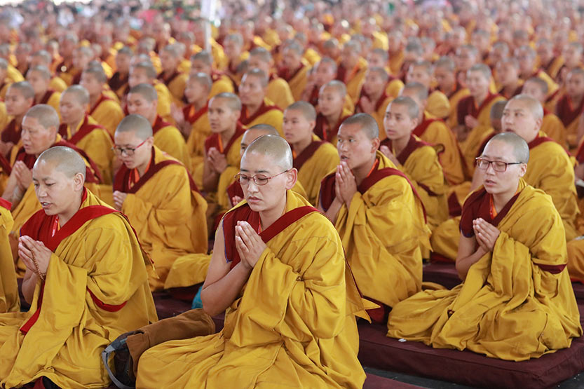 給予密乘的大灌頂時也是相同,要觀想[所在的]處所是壇城,所有眾生都是本尊等等,這也是清淨佛剎的方式之一。