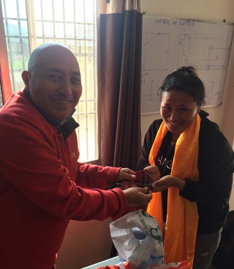 結業當天,在蔣秋.林巴,以及代表哈特.諾歐信託的尊瑪索南(Sonam)和尊瑪桑吉(Semkyi)的陪同下,喇嘛確札貴賓身分出席結業式,學員們向賓和裁縫老師獻上哈達。為了慶賀「縫紉幸福」計畫的成果,喇嘛確札還帶來了薈供品與大家分享,並且致贈禮物兩位老師以及學生們推選出的基礎班和進階班的兩位最優秀學生。